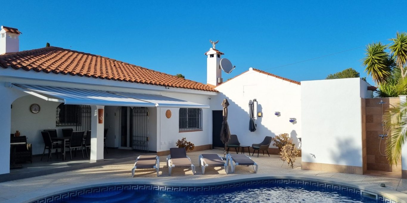 Das Grundstück ist von einer Mauer im traditionellen spanischen Stil umgeben, die nicht nur Privatsphäre bietet, sondern auch den Charme des südlichen Europas widerspiegelt. Parkmöglichkeit ist direkt auf dem Grundstück gegeben.
